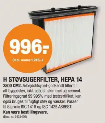 H støvsugerfilter, hepa 14 rabat hos Stark