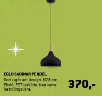 XL-BYG har et stort udvalg af varer udover Eglo sabinar pendel. Hold øje med den ugentlige XL-BYG tilbudsavis for at finde de bedste tilbud og kampagner. Udover Eglo sabinar pendel, kan du også finde følgende tilbud: Eglo razoni pendel, Eglo midsummer pendel & Eglo summerhill pendel.