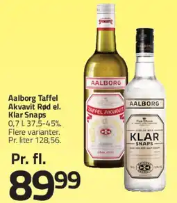 | 2 | Aalborg Taffel Akvavit / Klar Snaps 0.7 L | Fleggaard | 163,62 kr. | 89,99 kr. | 73,63 kr. Rabat | 28 januar 2026 | 17 februar 2026 | Se tilbud | |