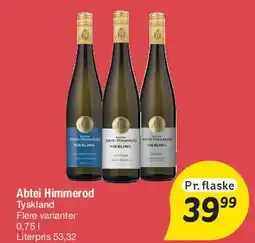 Købmandsgården Abtei Himmerod Riesling, DKK 39.95 tilbudAbtei Himmerod Riesling, DKK 39.95Købmandsgården39,95 kr.13 august 202530 september 2025