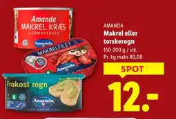 1Lidl AMANDA Makrel eller torskerogn tilbudAMANDA Makrel eller torskerogn 150-200 gLidl12,00 kr.29 januar 202601 februar 2026 Se tilbud