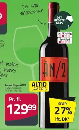 Citti Anima Negra AN/2 Vino de la Tierra de les Balears tilbudAnima Negra AN/2 Vino de la Tierra de les Balears 0.75 lCitti19,99 kr.18 marts 202607 april 2026