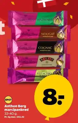 | Anthon Berg Marzipanbrød 33-40g | Netto | 5,00 kr. | 20 marts 2021 | 26 marts 2021 | |||