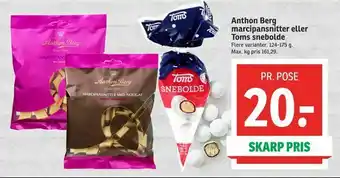 | Anthon Berg marcipansnitter eller Toms snebolde | SPAR | 20,00 kr. | 30 oktober 2021 | 05 november 2021 | |||