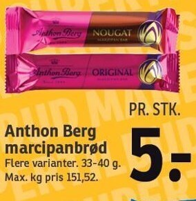 | Anthon berg marcipanbrød nougat | SPAR | 7,00 kr. | 07 oktober 2023 | 13 oktober 2023 | |||