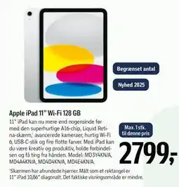 | Apple iPad 11" Wi-Fi 128 GB | Føtex | 2.555,00 kr. | 05 december 2025 | 11 december 2025 |