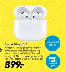 | Apple AirPods 4 med aktiv støjreduktion 1 stk. | Bilka | 1.279,00 kr. | 12 december 2025 | 18 december 2025 | |||