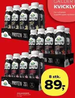 | Arla proteindrik 8 x 500 ml | Kvickly | 89,00 kr. | 21 marts 2025 | 27 marts 2025 | |||