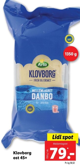 | Klovborg ost 45+ | Lidl | 79,00 kr. | 14 august 2022 | 20 august 2022 | |||