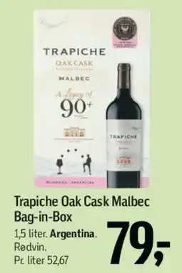 | Trapiche Oak Cask Malbec Bag-in-Box 1.5 L | Føtex | 79,00 kr. | 27 februar 2026 | 19 marts 2026 | |||
