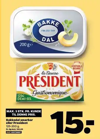 | Bakkedal smørbar el. president smør | Netto | 15,00 kr. | 19 november 2022 | 25 november 2022 | |||