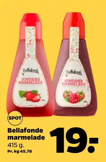 | Bellafonde marmelade 415 g. Hindbær eller jordbær. | Netto | 19,00 kr. | 26 juli 2024 | 02 august 2024 | |||