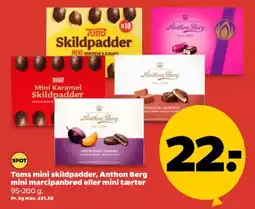 | Toms mini skildpadder, Anthon Berg mini marcipanbrød eller mini tærter 95 - 200 g | Netto | 22,00 kr. | 21 februar 2026 | 28 februar 2026 | |||