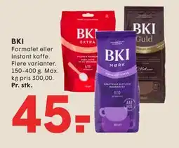 Denne uge finder du flere tilbud på BKI hos blandt andet SPAR og andre store kæder. Der er kampagner som 25 procent rabat, op til 40 procent besparelse eller ekstra lave priser på BKI (kaffe), BKI og BKI FORMALET KAFFE. Du kan filtrere efter type, størrelse eller forhandler.