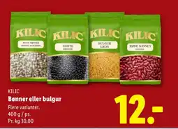 2Lidl KILIC Bønner eller bulgur tilbudKILIC Bønner eller bulgur 400 gLidl12,00 kr.12 marts 202614 marts 2026 Se tilbud