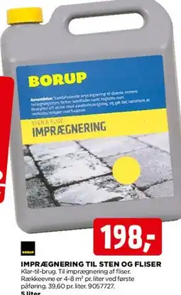 | Borup imprægnering til sten og fliser | jem & fix | 198,00 kr. | 14 maj 2023 | 20 maj 2023 | |||