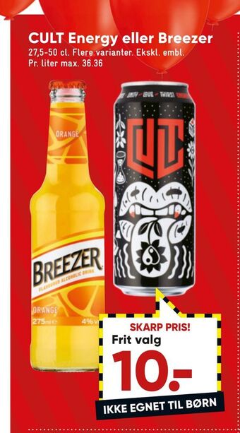 | Cult Energy eller Breezer | Bilka | 10,00 kr. | 05 august 2022 | 18 august 2022 | |||