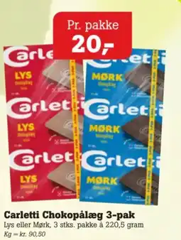 | Carletti Chokopålæg 3-pak, DKK 19.99 | Poetzsch Padborg | 19,99 kr. | 30 oktober 2025 | 26 november 2025 | |||