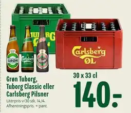 | Grøn TUBORG , TUBORG Classic eller CARLSBERG Pilsner 30 x 33 cl. | Min Købmand | 130,00 kr. | 19 oktober 2024 | 25 oktober 2024 | |||