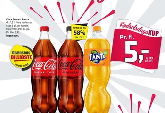 | Coca cola el. fanta 4 x 1,5 liter | Fleggaard | 6,25 kr. | 29 november 2023 | 12 december 2023 | |||