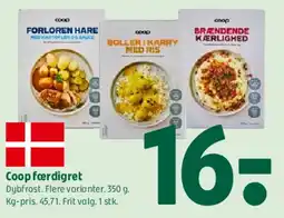 | Coop færdigret 300-400 g | Coop 365 | 16,00 kr. | 05 marts 2026 | 11 marts 2026 | |||