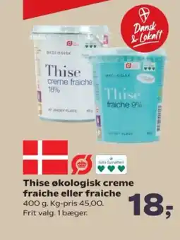 1SuperBrugsen Thise økologisk creme fraiche eller fraiche tilbudThise økologisk creme fraiche eller fraiche 400 gSuperBrugsen18,00 kr.07 april 202623 april 2026 Se tilbud