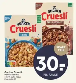 MENY QUAKER CRUESLI, DKK 30 tilbudQUAKER CRUESLI, DKK 30MENY30,00 kr.21 november 202527 november 2025