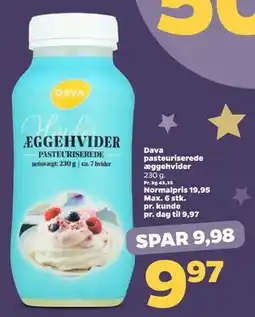 2Netto Dava pasteuriserede æggehvider tilbudDava pasteuriserede æggehvider 230 gNetto19,95 kr.9,97 kr.Spar 9.98 kr.27 december 202531 december 2025 Se tilbud
