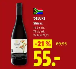 1Lidl DELUXE Shiraz tilbudDELUXE Shiraz 75 clLidl69,95 kr.55,00 kr.14,95 kr. Rabat26 april 202602 maj 2026 Se tilbud