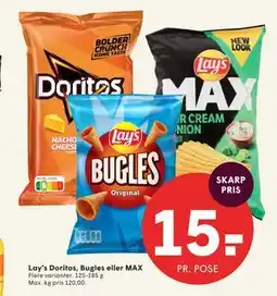 Doritos' udvalg af sprøde chips inkluderer smagsvarianter som Nacho Cheese, Barbecue, Sweet Chili Pepper og mange flere. Disse chips er perfekte til at nyde alene eller som en lækker snackskål til fester eller andre sammenkomster.