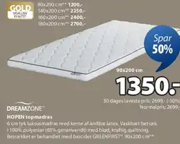 | DREAMZONE HOPEN TOPMADRAS 90 x 200 cm | JYSK | 1.350,00 kr. | Spar 50% | 13 februar 2025 | 27 februar 2025 | ||