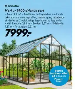 Bilka Uranus 9900 drivhus - sort tilbudUranus 9900 drivhus - sort 1 stk.Bilka8.999,00 kr.30 januar 202605 februar 2026