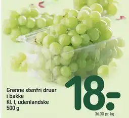 REMA 1000 Grønne stenfri druer i bakke Kl. I, udenlandske 500 g tilbud