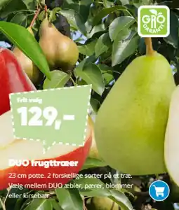 2Bilka Duo frugttræer tilbudDuo frugttræer 23 cmBilka129,00 kr.09 marts 202612 april 2026 Se tilbud