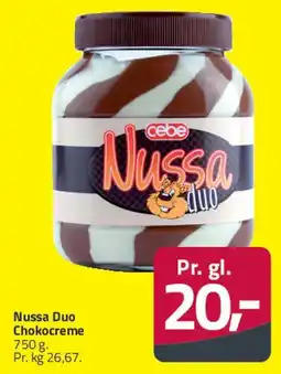 Calle Nussa Duo Chokocreme tilbudNussa Duo Chokocreme 750 gCalle20,00 kr.18 marts 202607 april 2026