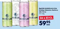 Egekilde Hyldeblomst-Lime, Hindbær-Rabarber, Med brus eller Citrus