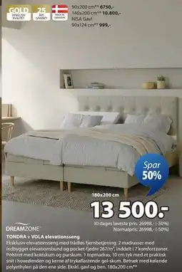 | KUPELVA + VOLA elevationsseng 180 x 200 cm | JYSK | 31.998,00 kr. | 16.000,00 kr. | Spar 50% | 01 december 2025 | 11 december 2025 | |