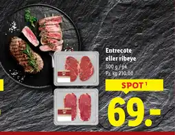 Lidl Entrecote eller ribeye tilbudEntrecote eller ribeye 600 gLidl125,00 kr.08 januar 202610 januar 2026