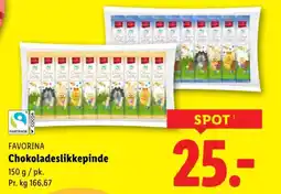 | FAVORINA Chokolade- slikkepinde 150 g | Lidl | 25,00 kr. | 23 marts 2025 | 29 marts 2025 | |||