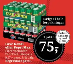 | Faxe Kondi eller Pepsi Max | Dagli'Brugsen | 16,00 kr. | 26 april 2024 | 09 maj 2024 | |||