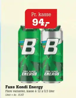 | Faxe Kondi Energy 12 x 0,5 liter | Poetzsch Padborg | 99,99 kr. | 10 april 2025 | 29 april 2025 | |||