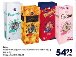 Fleggaard Fazer Fazermint, Dumle, Marianne, Jaffa, Julia el. Liquer Fills, DKK 29.99 tilbudFazer Fazermint, Dumle, Marianne, Jaffa, Julia el. Liquer Fills, DKK 29.99Fleggaard29,99 kr.26 november 202509 december 2025