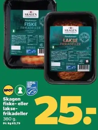 | Skagen fiske- eller laksefrikadeller | Netto | 25,00 kr. | 02 december 2023 | 08 december 2023 | |||