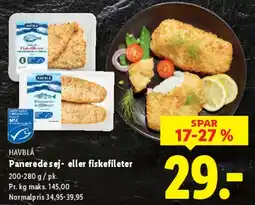2Lidl HAVBLÅ Panerede sej- eller fiskefileter tilbudHAVBLÅ Panerede sej- eller fiskefileter 200 - 280 gLidl34,95 kr.29,00 kr.5,95 kr. Rabat25 januar 202631 januar 2026 Se tilbud