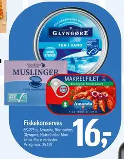 Føtex Amanda, Bornholms, Glyngøre eller Munkebo fiskekonserves, DKK 16 tilbudAmanda, Bornholms, Glyngøre eller Munkebo fiskekonserves, DKK 16Føtex16,00 kr.10 oktober 202516 oktober 2025
