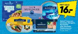 Bilka Naturli’ tune out, Amanda, Glyngøre, Bornholms eller Munkebo fiskekonserves tilbud