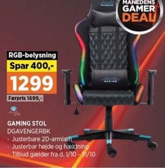 | Gaming stol RGB-belysning | Power | 2.299,00 kr. | 1.499,00 kr. | SPAR 35% | 17 oktober 2025 | 30 oktober 2025 | |
