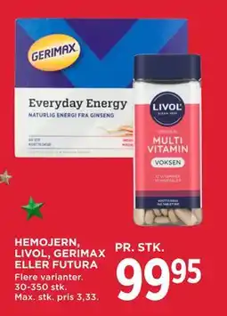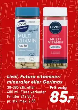 | Livol, Futura vitaminer/ mineraler eller Gerimax, DKK 85 | Føtex | 85,00 kr. | 28 november 2025 | 04 december 2025 | |||