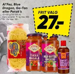 | Al’Fez, Blue Dragon, Go-Tan eller Patak’s | Bilka | 22,00 kr. | 19 juli 2024 | 25 juli 2024 | |||