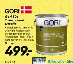 | Gori 306 Transparent træolie 5 l. | Bilka | 499,00 kr. | 06 marts 2026 | 12 marts 2026 | |||